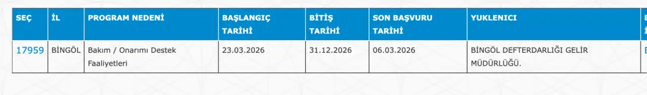 Bingöl 5 İUP Personel İlanı: