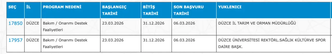Düzce 241 İUP Personel İlanı: