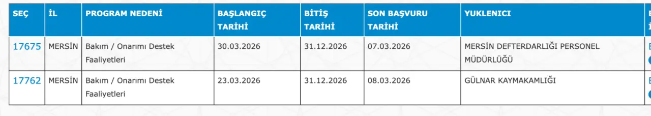 Mersin 20 İUP Personel İlanı:
