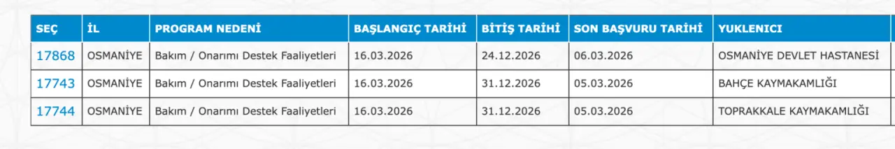 Osmaniye 380 İUP Personel İlanı: