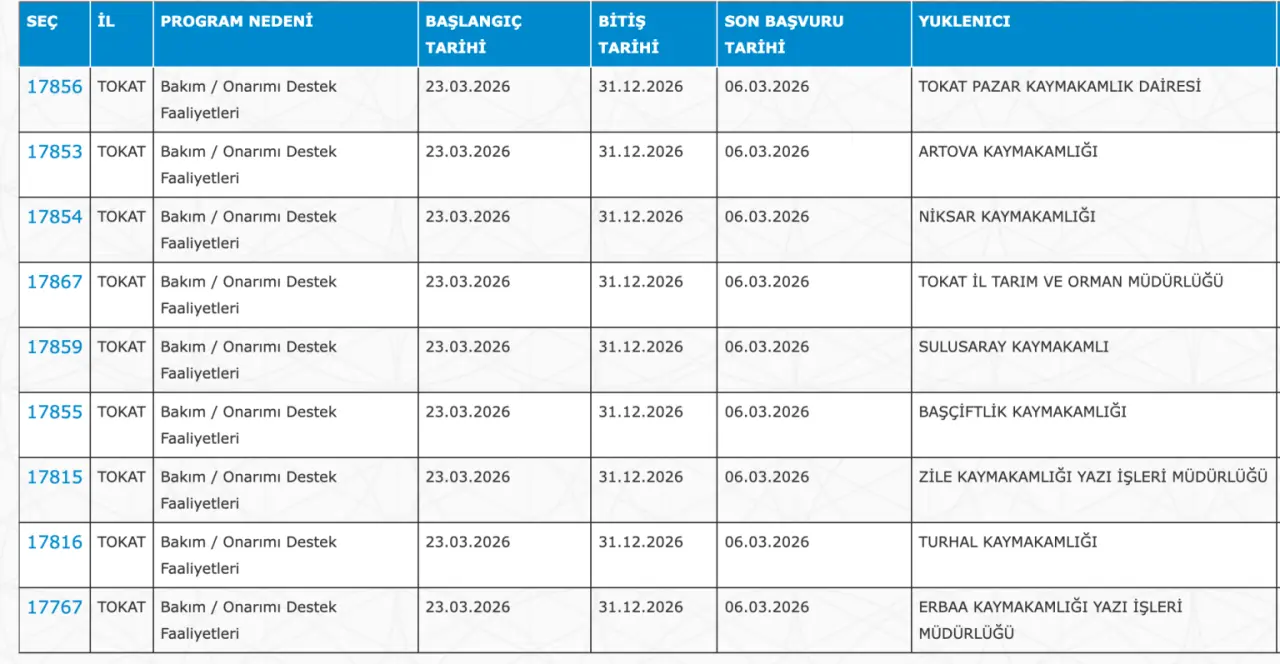8615 Güncel İlan Listesi Yayımlandı: