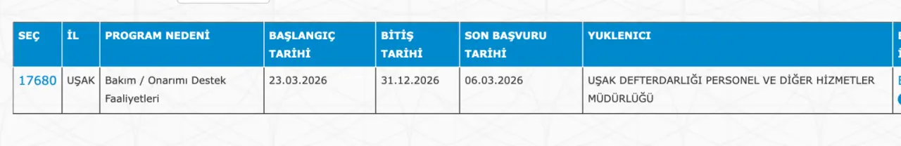 Uşak 5 İUP Personel İlanı: