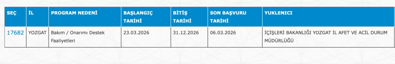 Yozgat 10 İUP Personel İlanı: