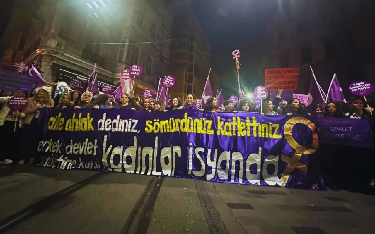 Eylemde açılan ana pankartta, “Aile, ahlâk dediniz; sömürdünüz, katlettiniz. Erkek-devlet şiddetine karşı kadınlar isyanda” ifadeleri yer aldı.