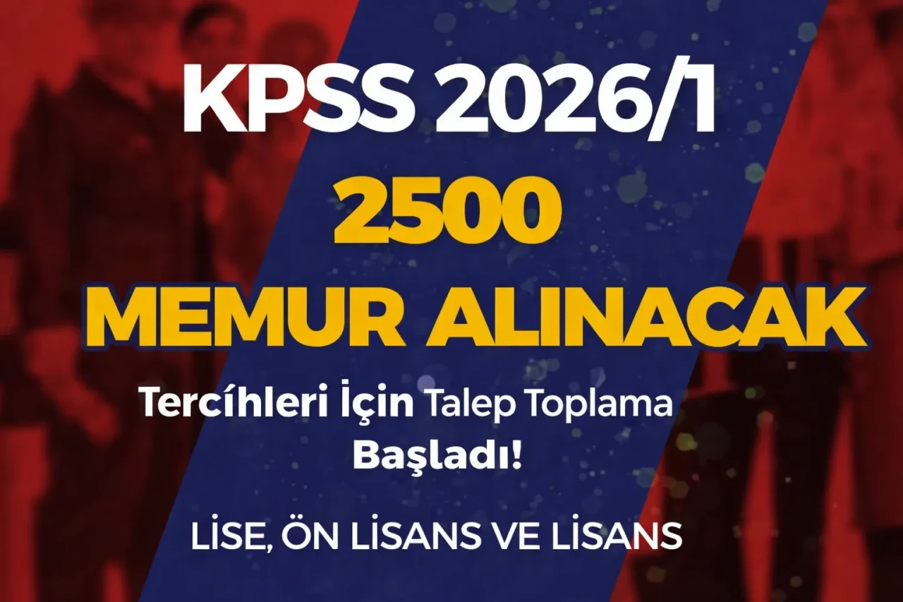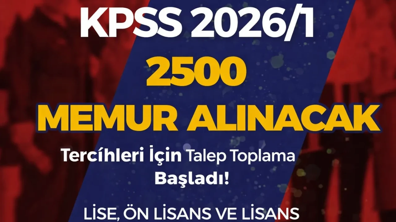 Ölçme, Seçme ve Yerleştirme Merkezi Başkanlığı tarafından yayımlanacak olan KPSS 2026/1 tercih kılavuzu ile kamuya en az lise mezunu 2500 memur alımı planlanıyor. Söz konusu alımlar farklı kurumlar tarafından yapılacak olup İlgili kurumların boş kontenjanlarının tamamlanması adına Yapacakları bildiri için süreç başladı.
