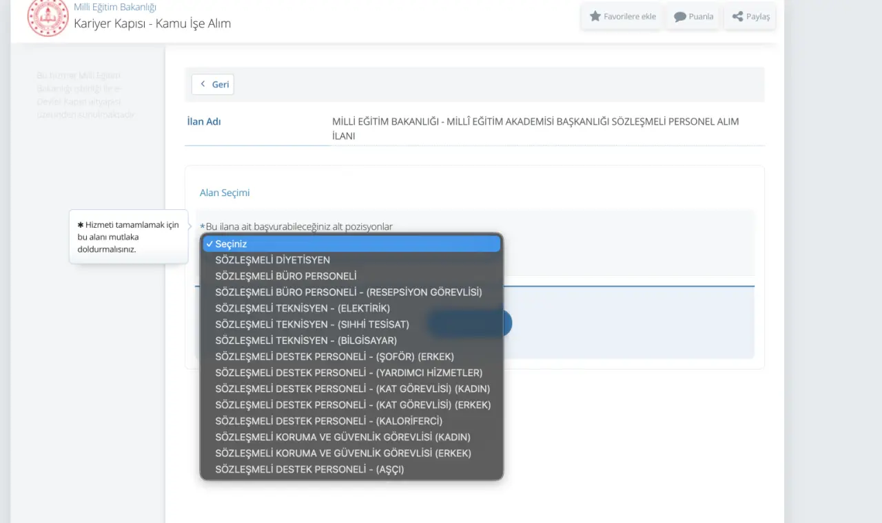 3. “Millî Eğitim Bakanlığı – Sözleşmeli Personel Alımı” ilanını seçin.