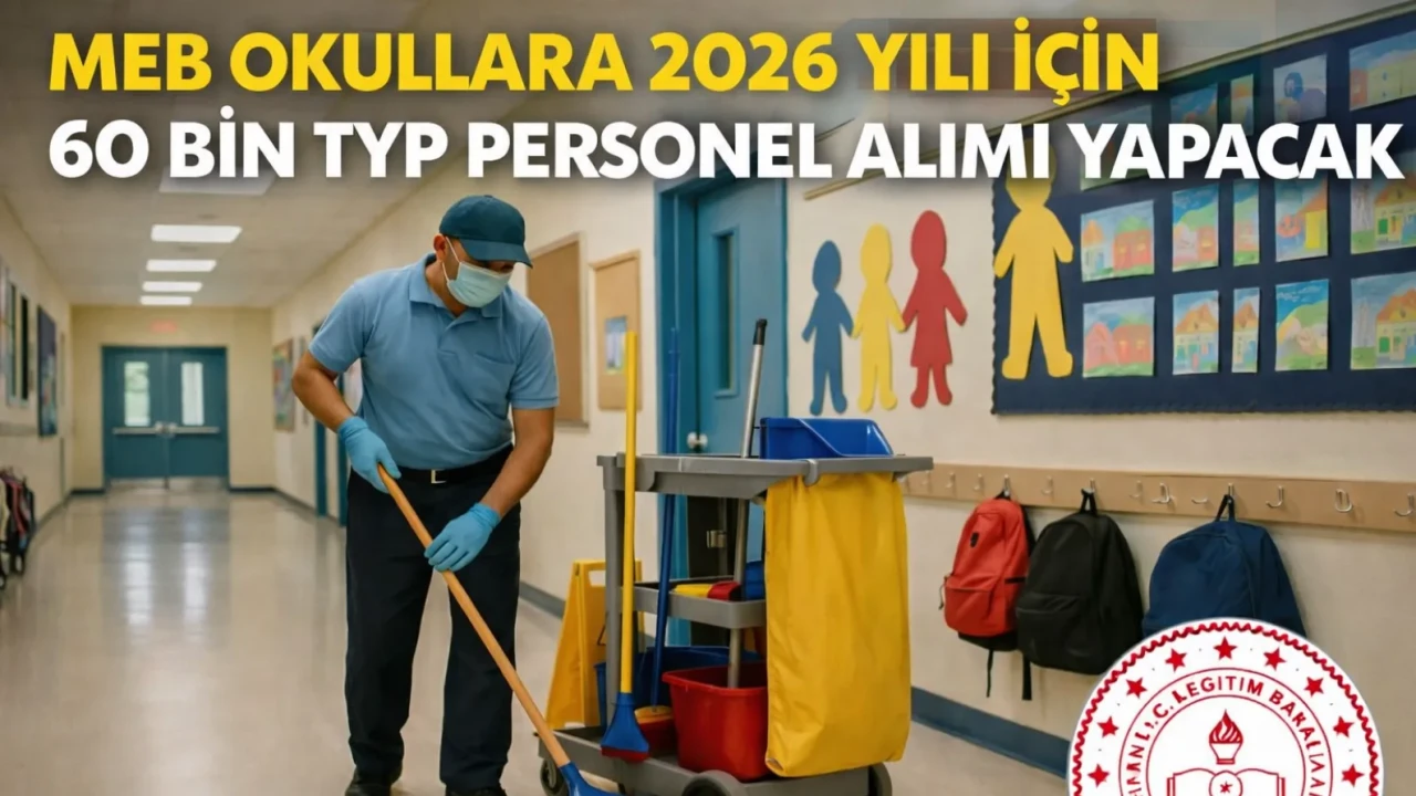 Milli Eğitim Bakanlığı (MEB), 2026 yılı içerisinde okullardaki personel ihtiyacını karşılamak amacıyla Toplum Yararına Program (TYP) kapsamında 60 bin personel alımı yapmaya hazırlanıyor. Alımların, Türkiye İş Kurumu (İŞKUR) üzerinden yayımlanacak ilanlarla Türkiye genelinde gerçekleştirileceği bildirildi.
