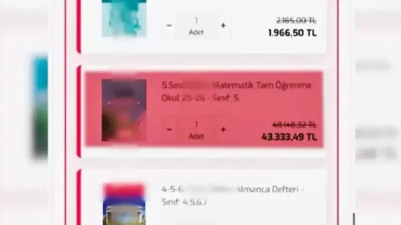 Okulların açılmasına kısa bir süre kala alışveriş telaşı da başladı. NTV'nin haberine göre, İstanbul'da bir özel okulun 5. sınıf öğrencileri için hazırladığı alışveriş sepetinin içinde 43 bin liraya matematik kitabı, 4 bin liraya Türkçe kitabı, 3 bin liraya ise din kültürü kitabı yer aldı. 43 bin lira olarak görünen matematik kitabının fiyatının 48 bin liradan indiği görüldü. Özel okulun bir resim defteri için istediği fiyat ise bin 700 lira.