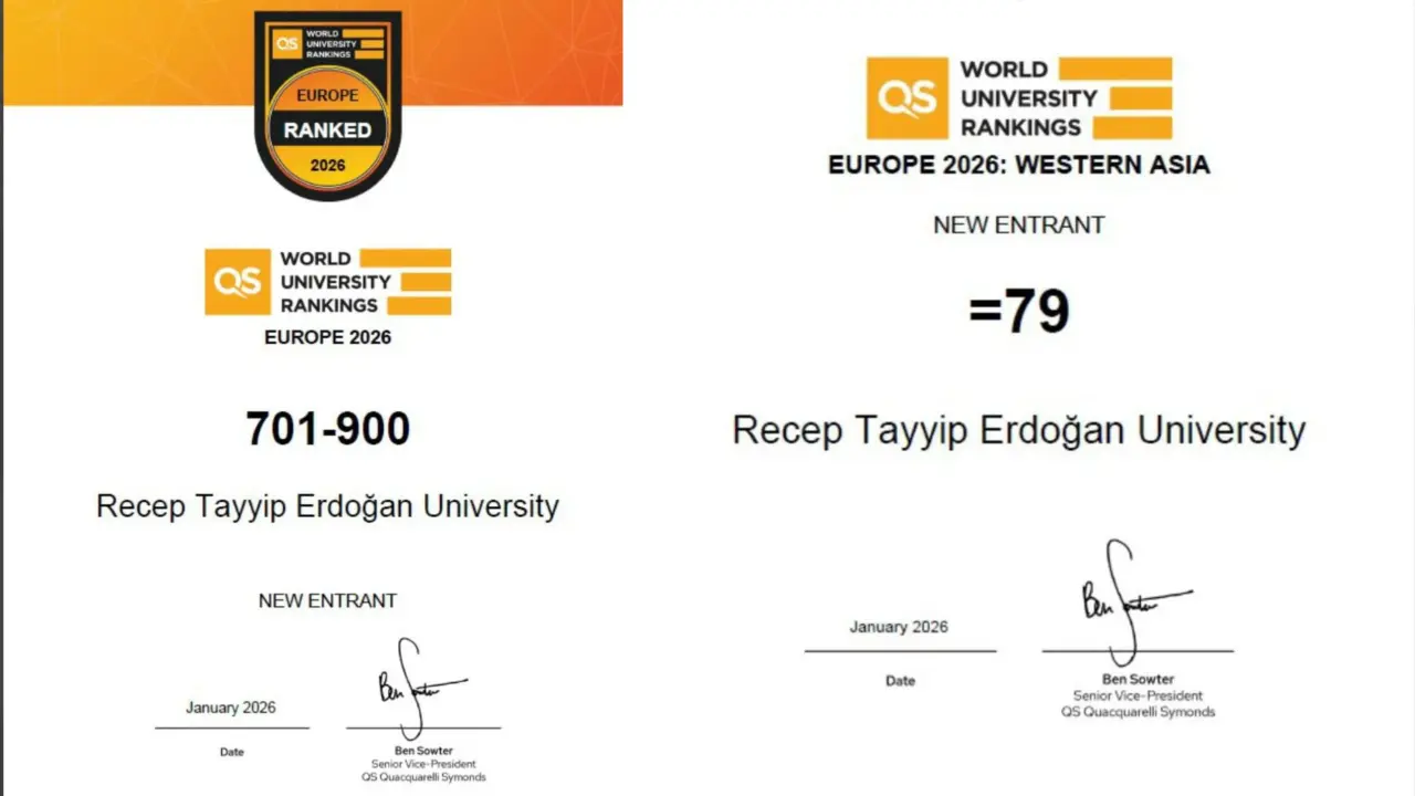 Rektör Prof. Dr. Yusuf Yılmaz’ın öncülüğünde son üç yılda hayata geçirilen stratejik çalışmalar neticesinde RTEÜ, dünyanın önde gelen derecelendirme kuruluşlarından QS (Quacquarelli Symonds) tarafından açıklanan QS World University Rankings – Europe 2026 listesine ilk kez girme başarısı gösterdi.