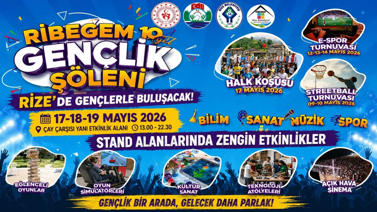 Rize Belediyesi tarafından düzenlenen “RİBEGEM Gençlik Şöleni”, 17-18-19 Mayıs 2026 tarihlerinde Rize’de gençleri, çocukları ve aileleri bir araya getirmeye hazırlanıyor.