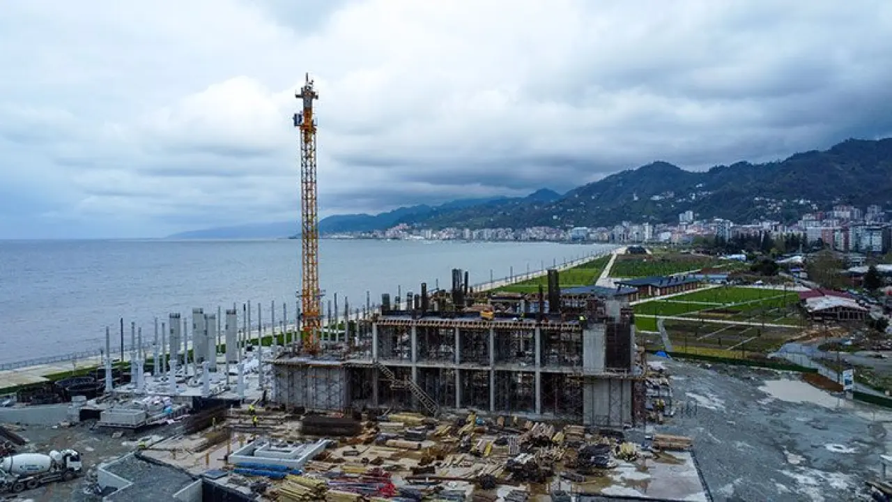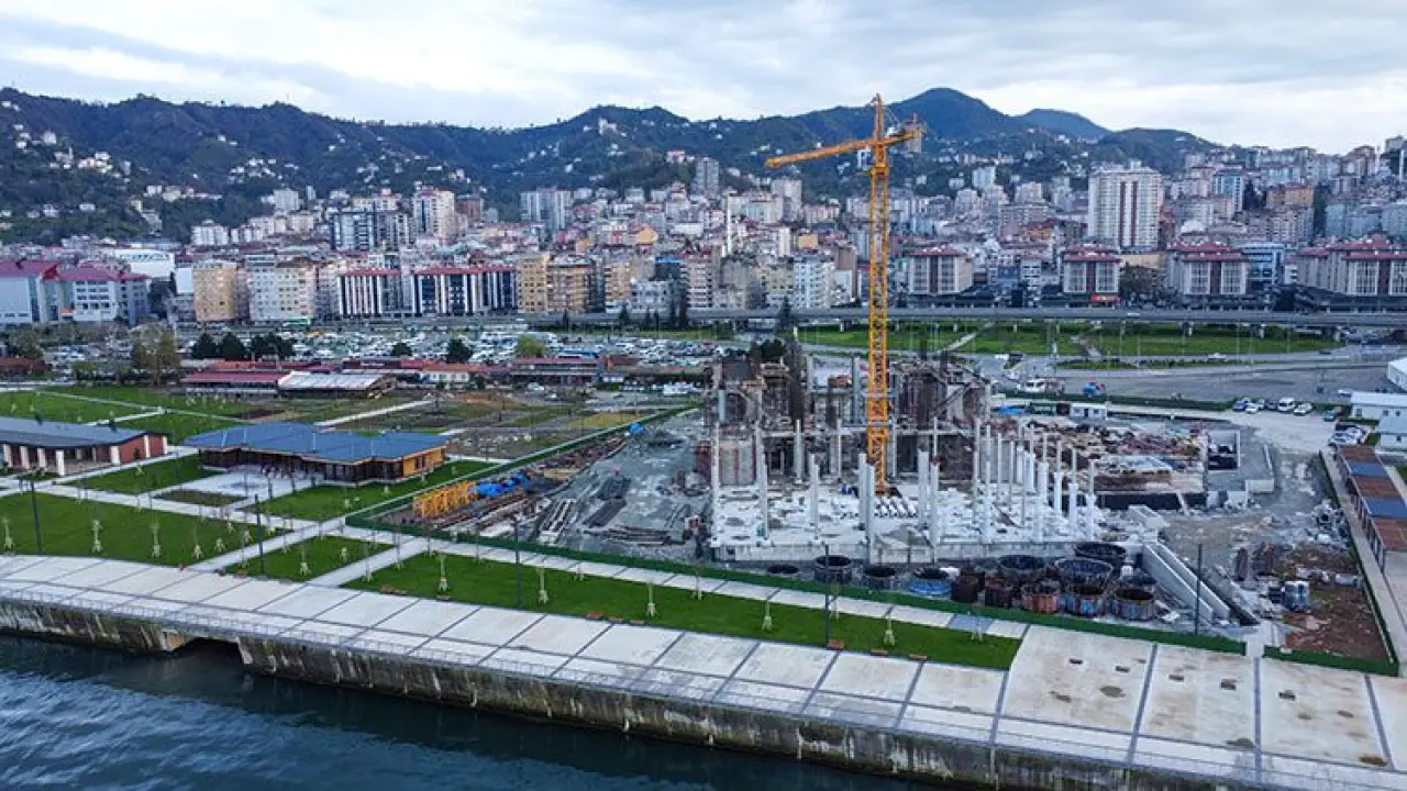 Rize sahil dolgu alanında inşaatı hızla yükselen Recep Tayyip Erdoğan Camii ve Külliyesi’nin güncel görselleri kamuoyuyla paylaşıldı.