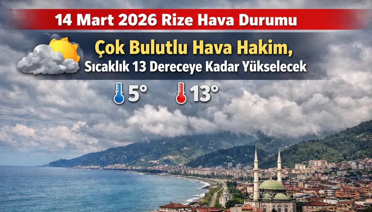Meteoroloji Genel Müdürlüğü'nün yayımladığı son hava durumu tahminine göre, 14 Mart 2026 tarihinde Rize'de oldukça bulutlu bir atmosferin hâkim olması bekleniyor. Karadeniz Bölgesi'nin önemli şehirlerinden biri olan Rize, gün boyunca kapalı bir gökyüzü ile karşılaşacak. Sıcaklık ise mevsim normalleri etrafında gidip gelecek.
