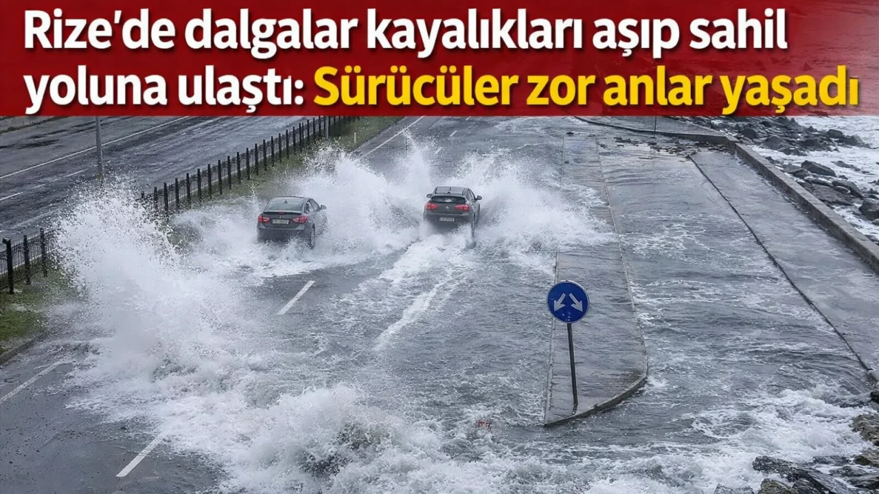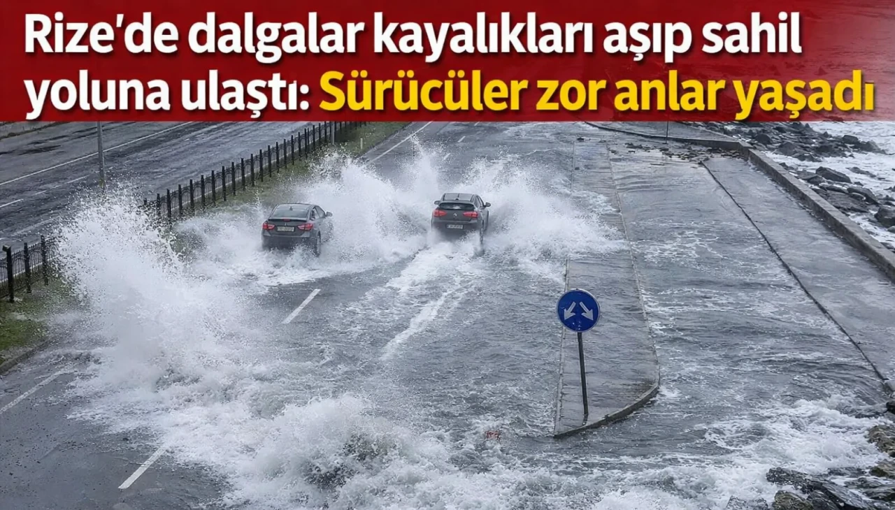 Rize Haber Gündem Rize'de dalgalar kayalıkları aşıp sahil yoluna ulaştı: Sürücüler zor anlar yaşadı