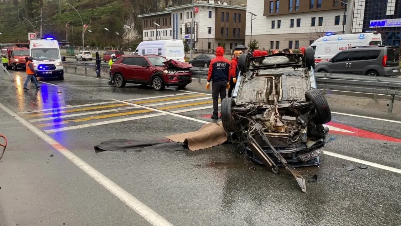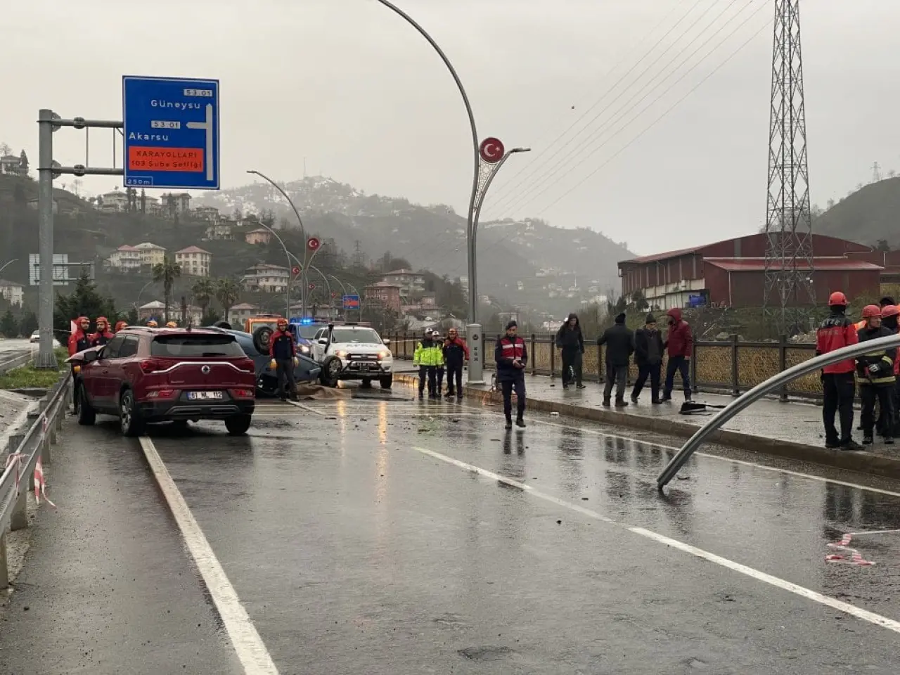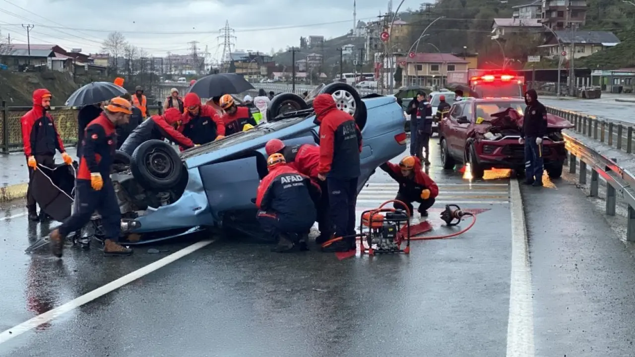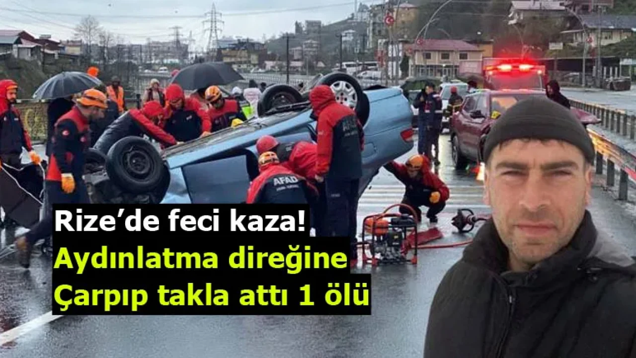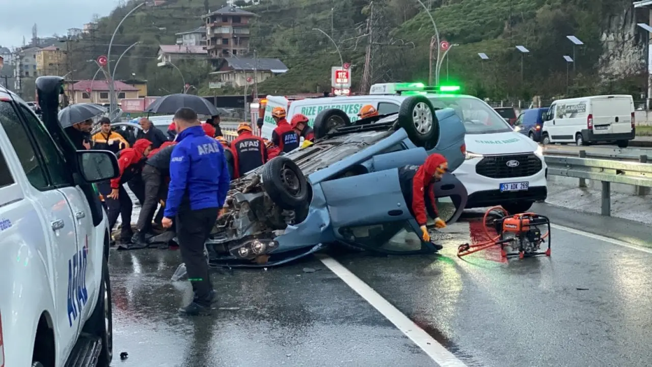 Kaza, saat 17.00 sıralarında Rize- Güneysu karayolunda meydana geldi. Rize'den Güneysu ilçesine seyreden Mehmet Ali Tercan idaresindeki 53 AB 422 plakalı otomobil, sürücüsünün kontrolünden çıkıp, önce sağ şeridinde ilerleyen O. D. idaresindeki 61 NL 112 plakalı cipe, ardından aydınlatma direğine çarpıp takla attı.