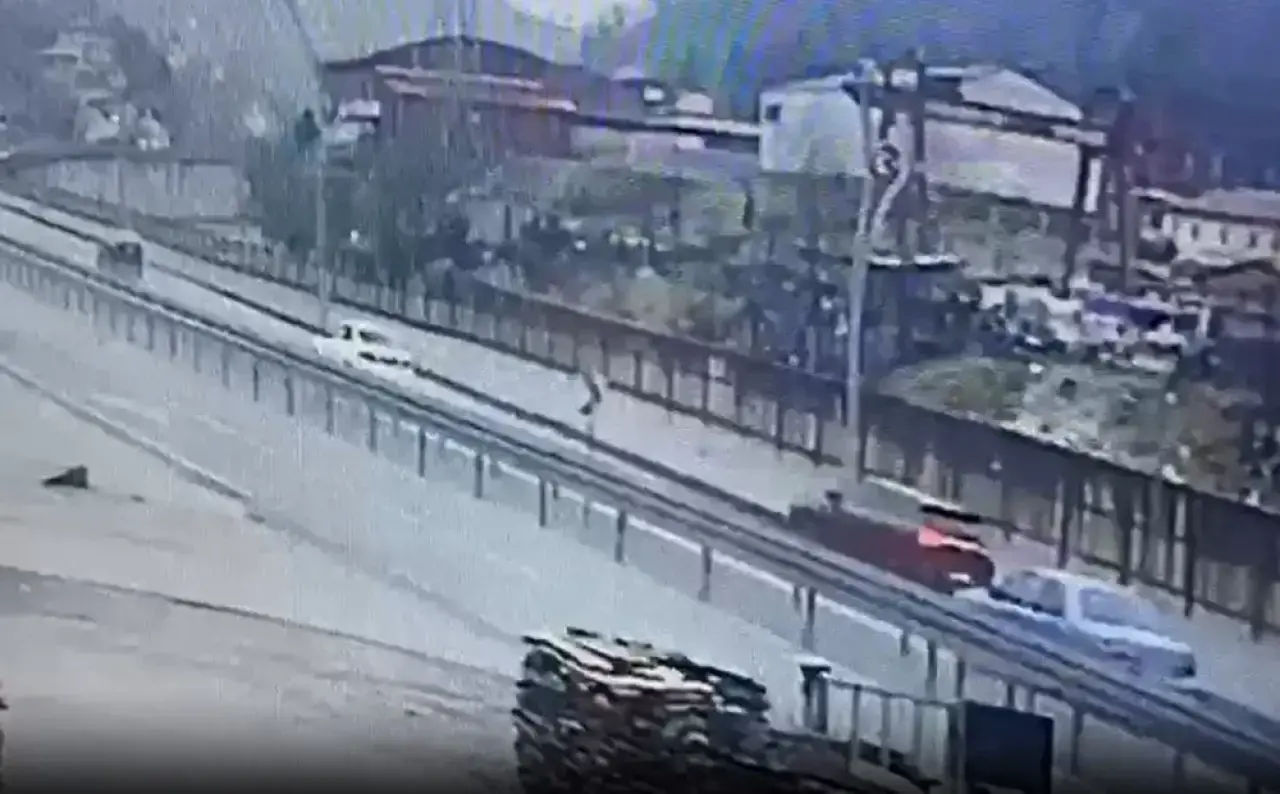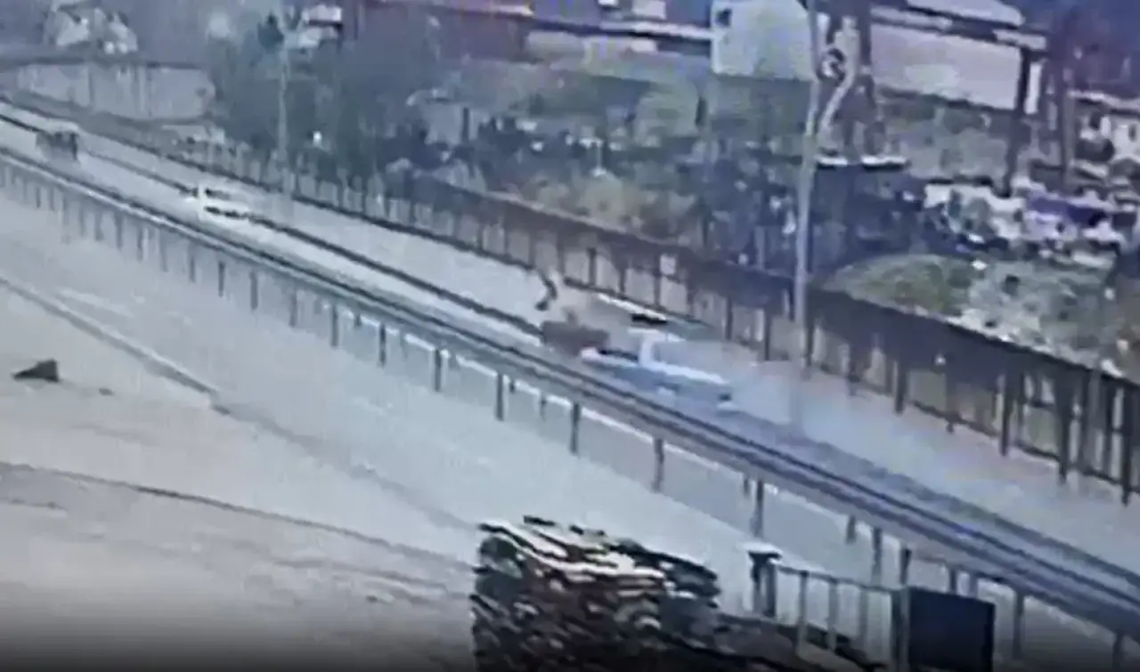 Kaza anı ise çevredeki bir iş yerinin güvenlik kamerasına yansıdı. Görüntüde, sol şeritten gelen otomobilin önce sağ şeridindeki cipe, ardından aydınlatma direğine çarpıp takla attığı anlar yer aldı.