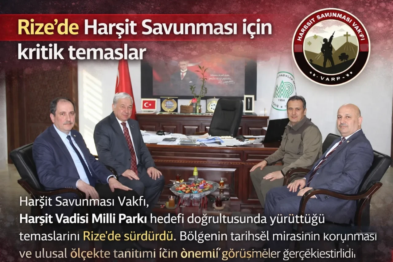 Harşit Savunması Vakfı, Harşit Savunması’nın tarihsel mirasını korumak ve “Harşit Vadisi Milli Parkı” hedefine ulaşmak amacıyla yürüttüğü diplomasi trafiğine Rize’de devam etti. Erzincan, Gümüşhane ve Giresun’un ardından Rize’de de üst düzey temaslar yapıldı.