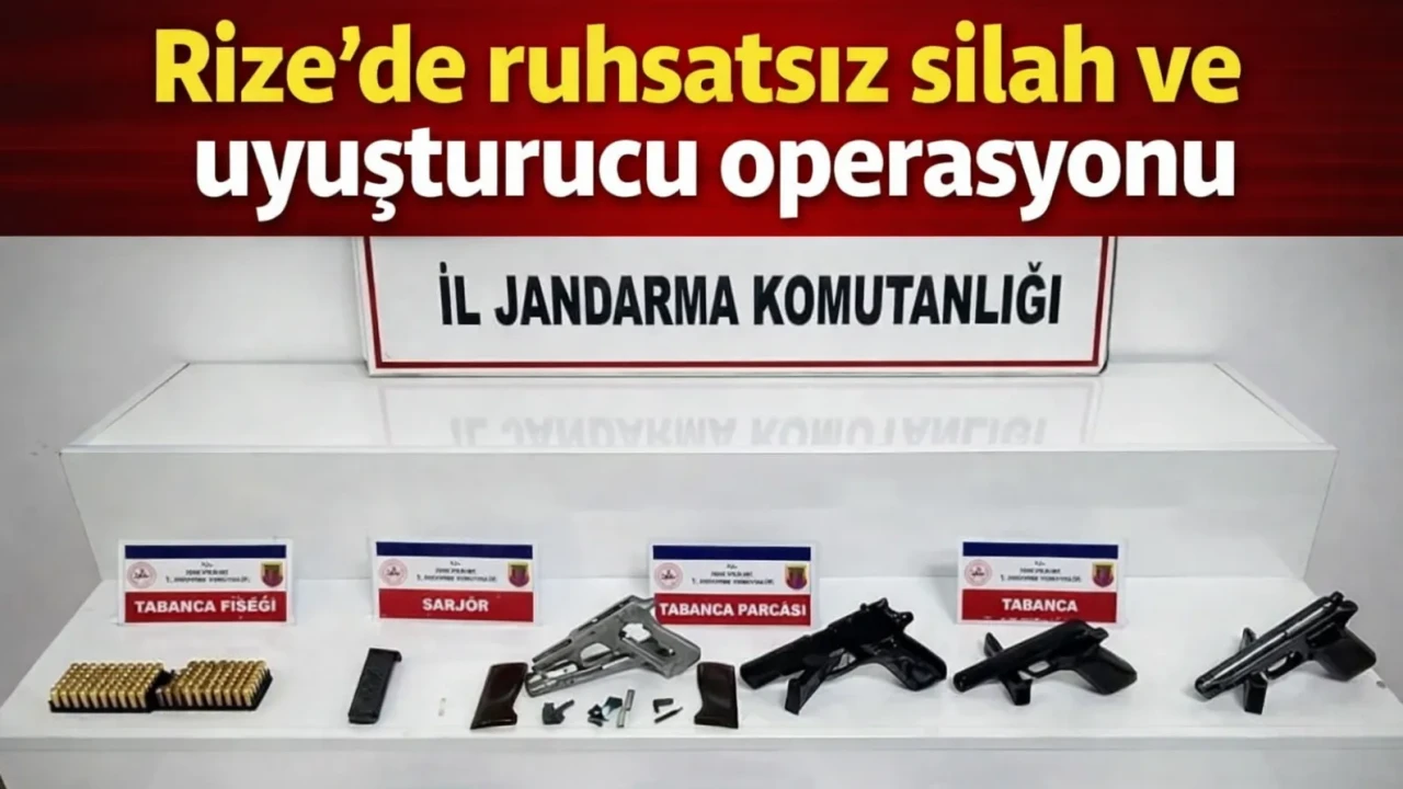 Rize İl Jandarma Komutanlığı ekipleri tarafından Pazar Cumhuriyet Başsavcılığı koordinesinde "6136 Sayılı Kanun'a muhalefet" ve "uyuşturucu ve uyarıcı madde" suçlarına yönelik operasyon gerçekleştirildi. Fındıklı ilçesinde 2 şüphelinin ikametinde eş zamanlı yapılan aramalarda 3 ruhsatsız tabanca, 4 şarjör, 12 tabanca yapımında kullanılan malzeme, 94 fişek, 1 gram kenevir tohumu ve 1 gram bonzai ele geçirildi. Şüphelilerden 1'i cumhuriyet savcısının talimatıyla gözaltına alınarak, hakkında adli işlem başlatıldı. Diğer şüpheli ise ifadesinin alınmasının ardından serbest bırakıldı.