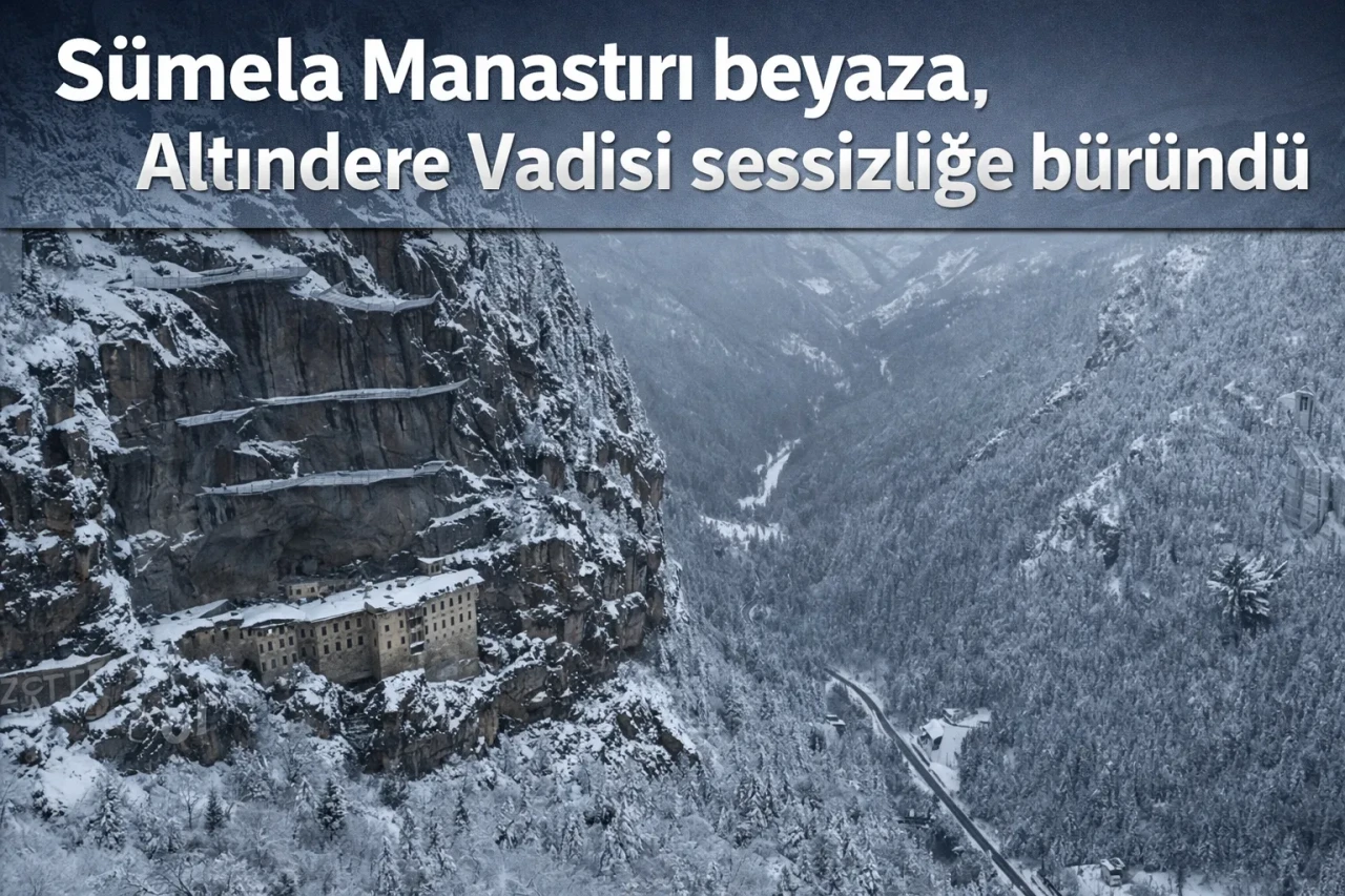 Türkiye’nin önemli inanç ve kültür turizmi merkezlerinden biri olan Sümela Manastırı ve çevresi, kar yağışıyla beyaza büründü. Altındere Vadisi’nin doğal dokusu ve tarihi manastırın atmosferi, kar manzarasıyla birleşince ortaya etkileyici görüntüler çıktı.