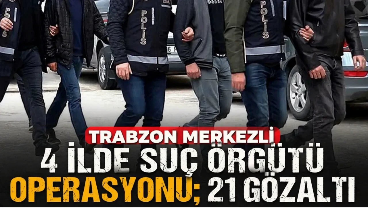 TRABZON merkezli 4 ilde polis ekipleri tarafından organize suç örgütüne yönelik düzenlenen operasyonda 21 şüpheli gözaltına alındı.