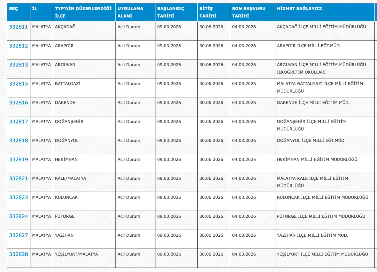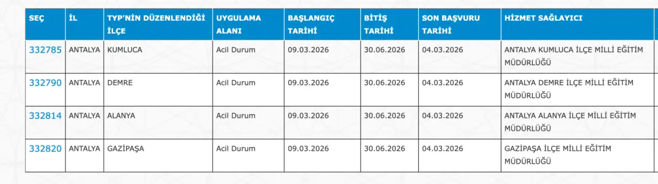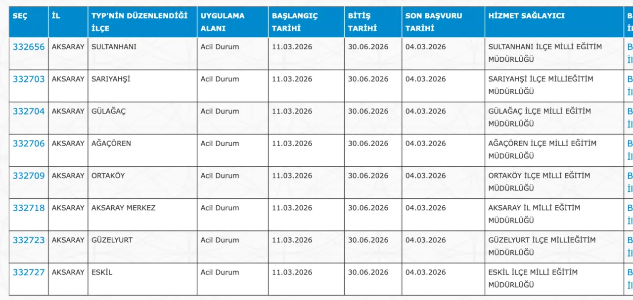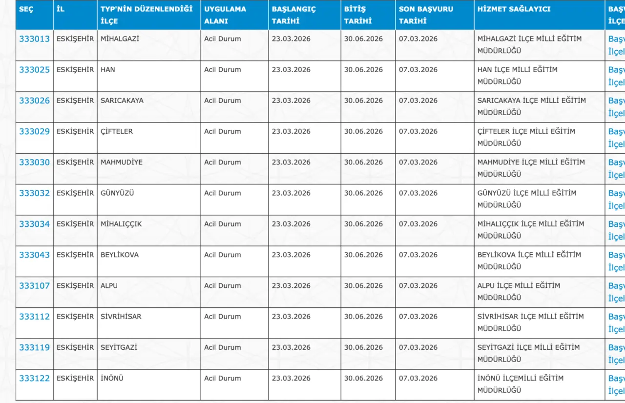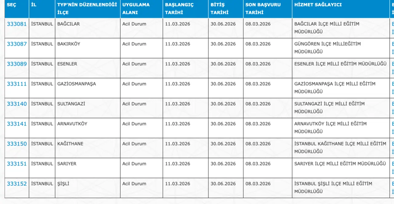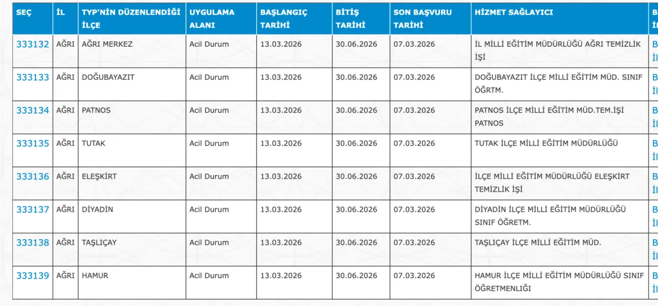 Adaylar TYP Başvurularını sadece İŞKUR üzerinden gerçekleştirecekler. Buna göre ” https://esube.iskur.gov.tr/Typ/TypArama.aspx ” adresine e-Devlet şifresi ile giriş yaptıktan sonra aşağıdaki listede vereceğimiz ilçe listesine göre arama gerçekleştirebilirsiniz.