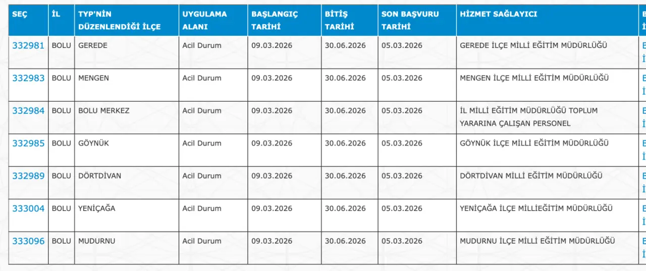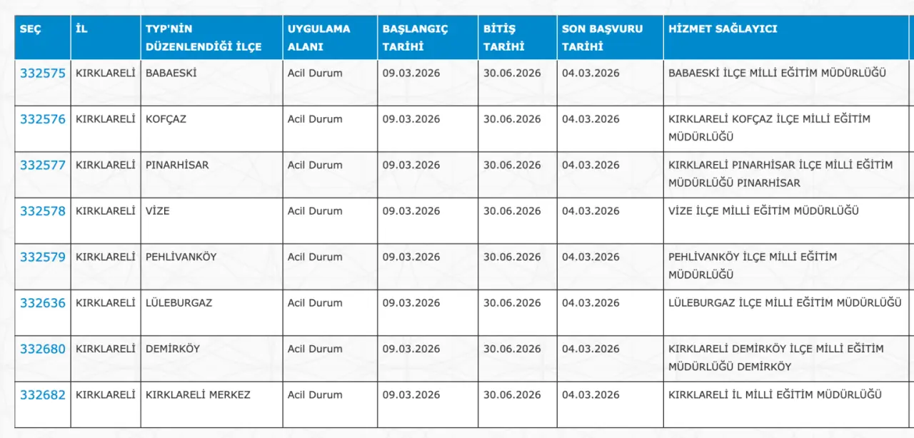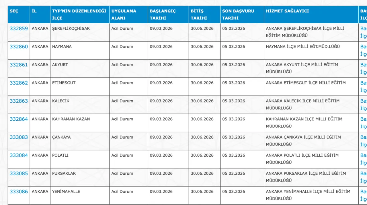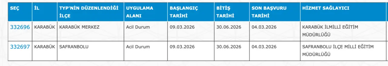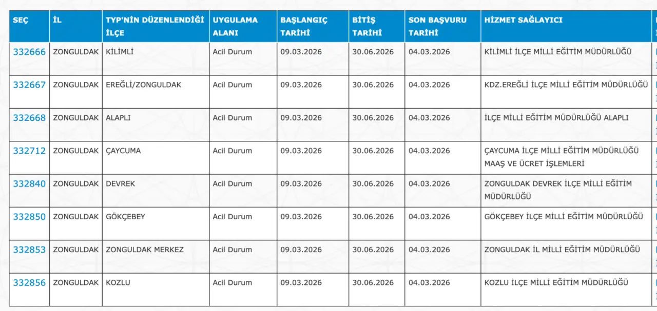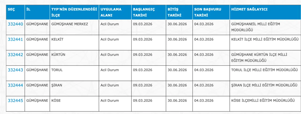 Adaylar TYP Başvurularını sadece İŞKUR üzerinden gerçekleştirecekler. Buna göre ” https://esube.iskur.gov.tr/Typ/TypArama.aspx ” adresine e-Devlet şifresi ile giriş yaptıktan sonra aşağıdaki listede vereceğimiz ilçe listesine göre arama gerçekleştirebilirsiniz.