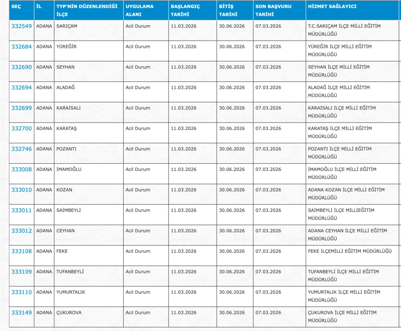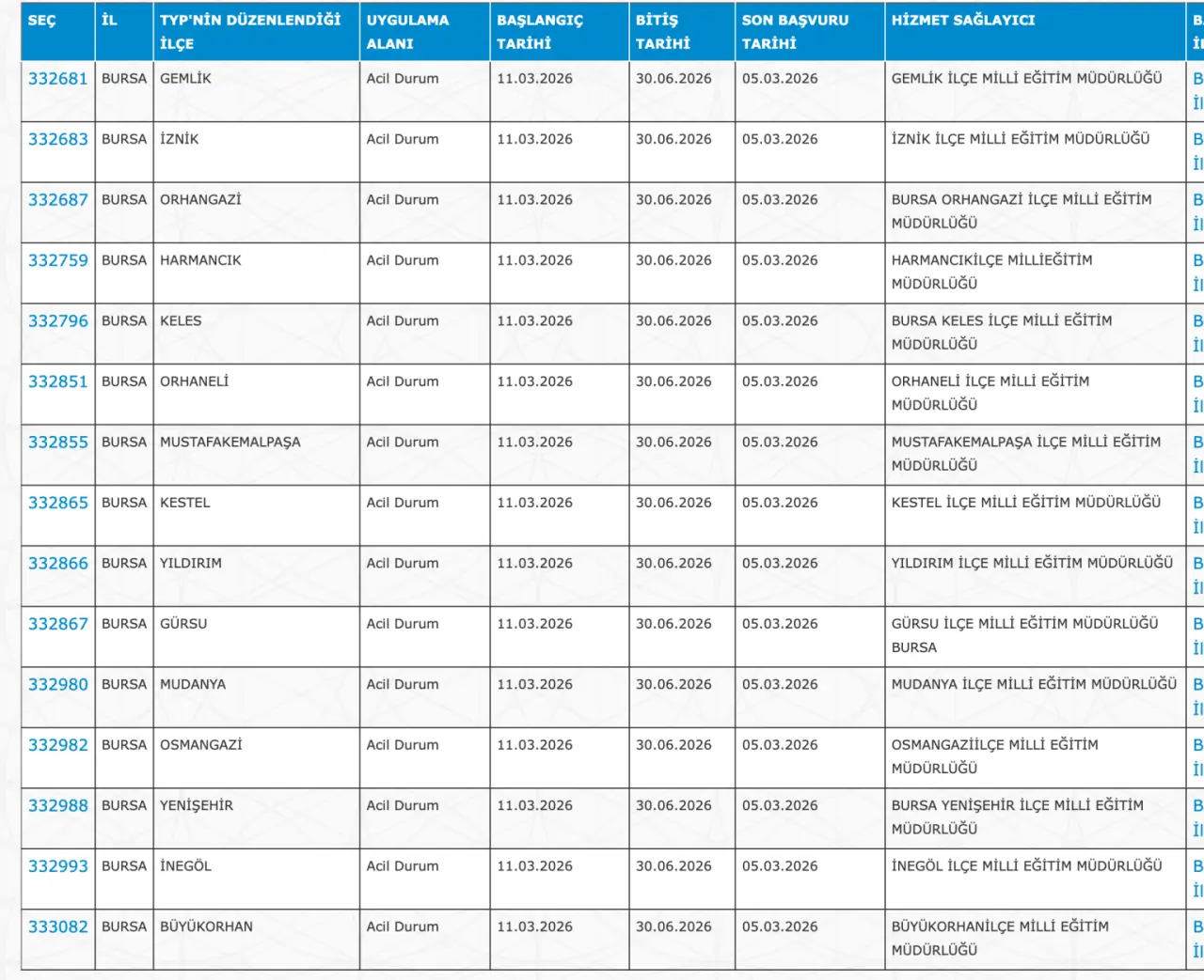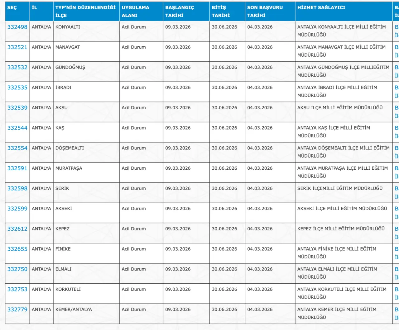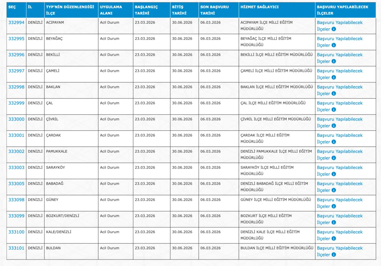 Adaylar TYP Başvurularını sadece İŞKUR üzerinden gerçekleştirecekler. Buna göre ” https://esube.iskur.gov.tr/Typ/TypArama.aspx ” adresine e-Devlet şifresi ile giriş yaptıktan sonra aşağıdaki listede vereceğimiz ilçe listesine göre arama gerçekleştirebilirsiniz.