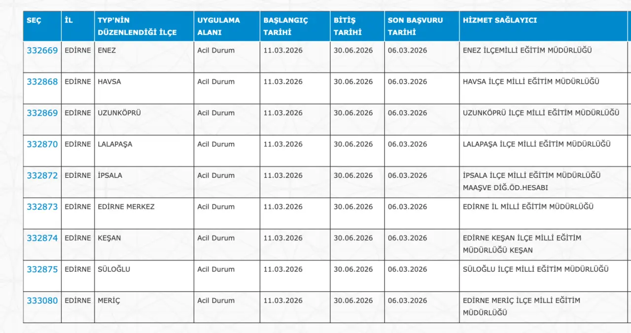 Edirne 439 TYP Personel İlanı: