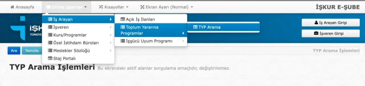 İŞKUR TYP Başvuru Ekranı ve Başvuru Adımları: