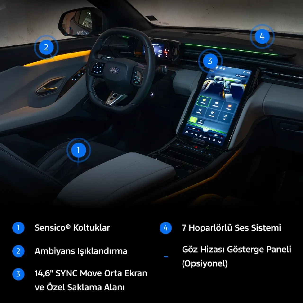 Menzil: Şehir içi ve uzun yol karma kullanımda 471 km’ye varan menzil. Hızlı Şarj: DC istasyonlarda batarya %10’dan %80’e sadece 25 dakikada doluyor. 10 dakikalık şarjla 137 km yol gidilebiliyor. Bagaj Hacmi: 572 litrelik dev bagaj, koltuklar yatırıldığında 1510 litreye çıkıyor. Gizli Bölme: Aracın içinde 14.6 inçlik hareketli ekranın arkasında “Mega Konsol” adı verilen 17 litrelik kilitli bir saklama alanı bulunuyor. Donanım: Matrix LED farlar, masaj özellikli sürücü koltuğu, B&O ses sistemi ve panoramik cam tavan gibi üst düzey özellikler sunuluyor.