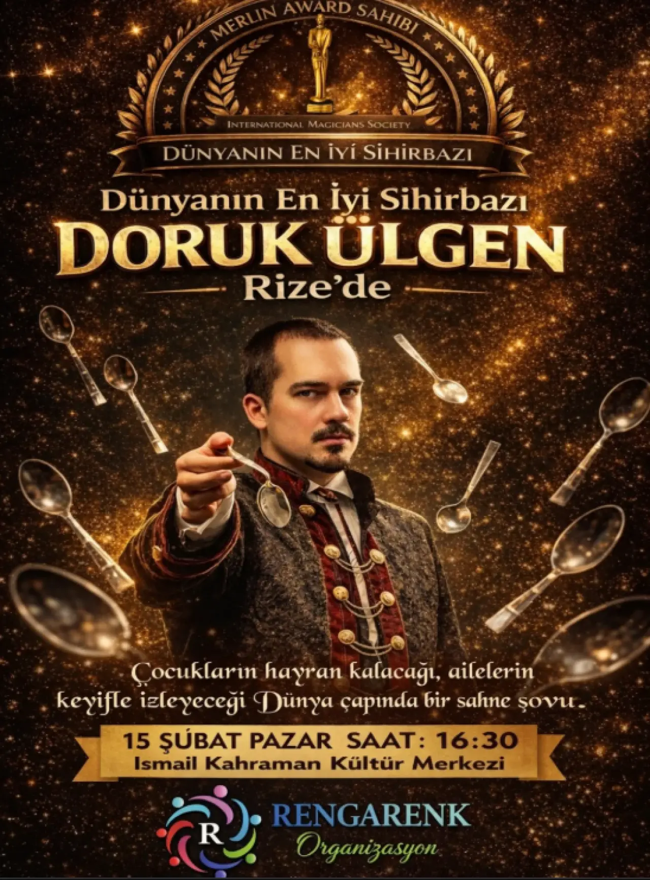 Uluslararası başarılarıyla tanınan ve prestijli Merlin Award ödülüne sahip sihirbaz Doruk Ülgen, dünya standartlarındaki sahne şovuyla Rize’de sanatseverlerle buluşmaya hazırlanıyor. Özellikle çocuklara yönelik hazırlanan ancak ailelerin de keyifle izleyebileceği gösteri, izleyicilere unutulmaz bir deneyim sunacak.