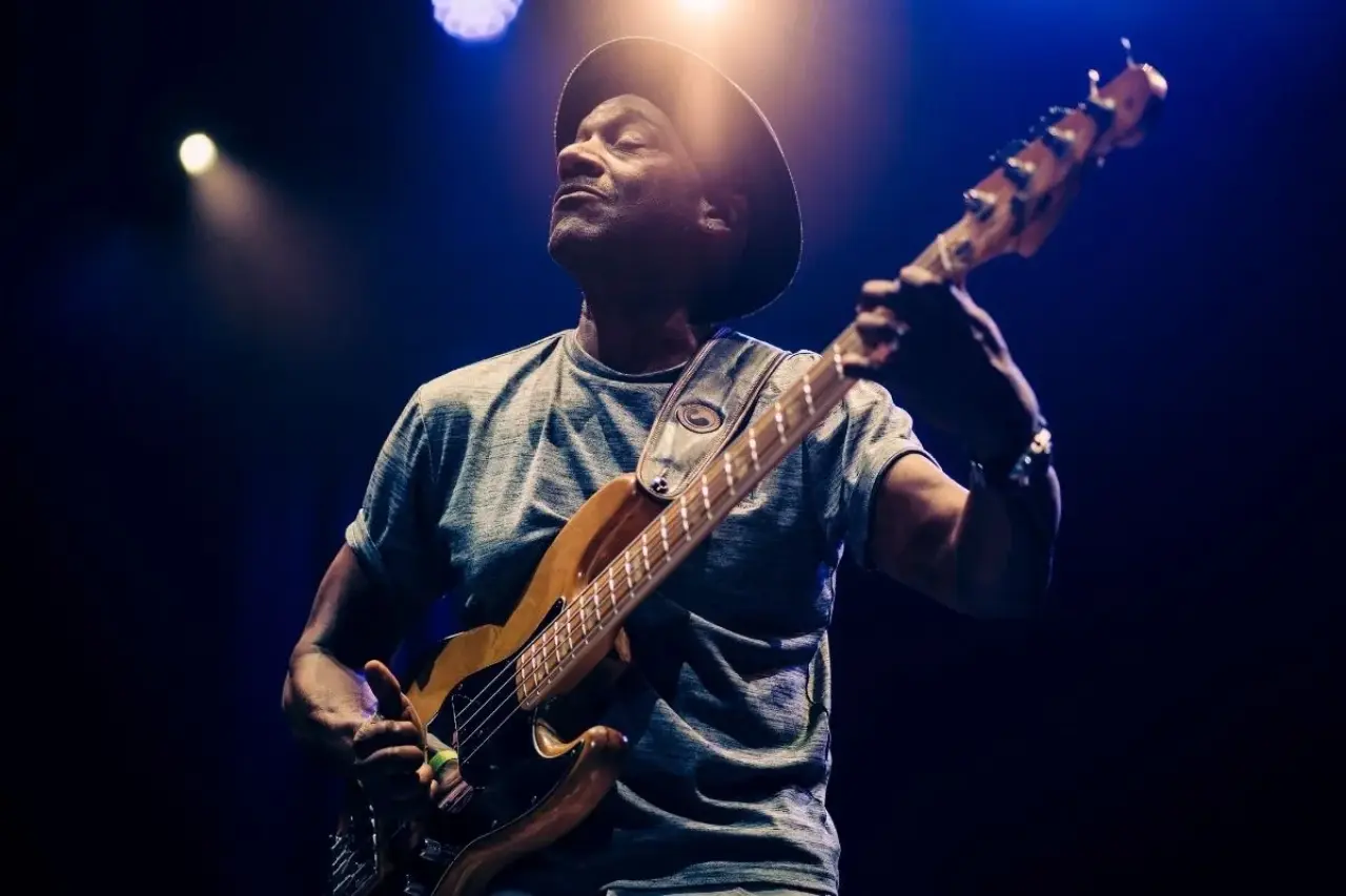 Marcus Miller sahnede, bas gitar performansı sırasında. Fotoğraf: Diego Garcia Marquez / İKSV Tanıtım