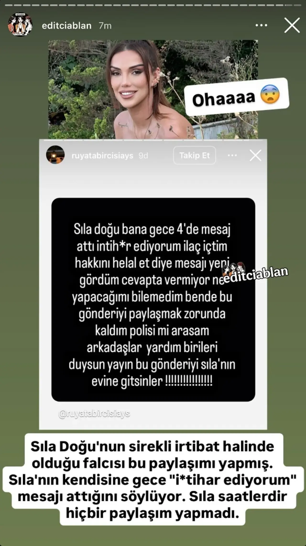 Dilan Polat’ın ablası Sıla Doğu’nun gece yarısı falcısına “İntihar ediyorum” mesajı attığı iddia edildi. Sıla Doğu hakkında ilk açıklama kardeşi Dilan Polat’tan geldi
