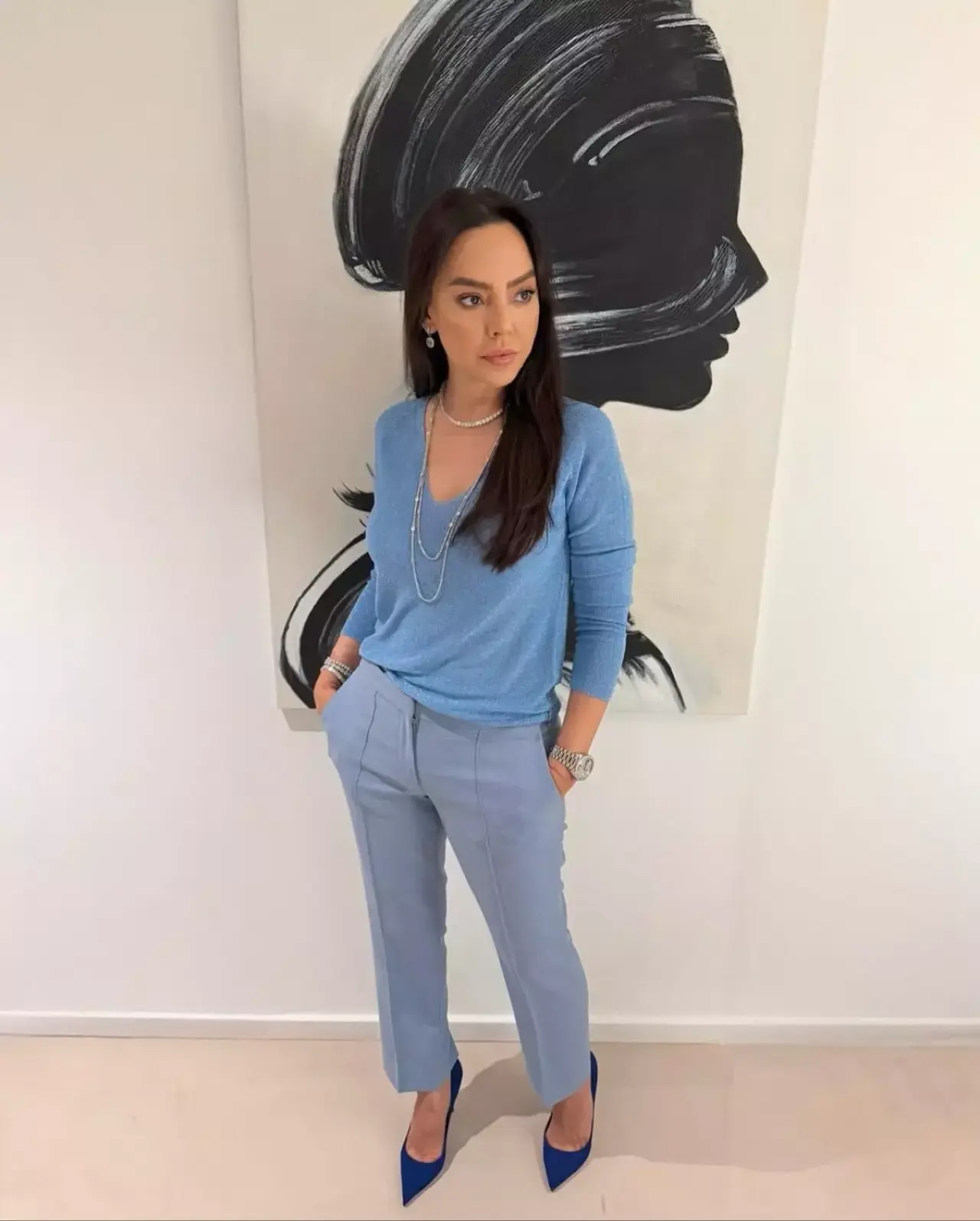 Mavi tonlarında kazak ve pantolonuyla objektif karşısına geçen Gündeş’in paylaşımı, sosyal medyada kısa sürede viral oldu.