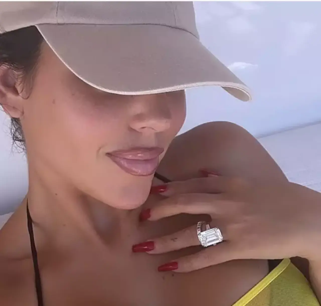 Rodriguez, bu sefer Ronaldo’nun 30 karatlık ve yaklaşık 3 milyon dolar değerindeki gösterişli nişan yüzüğünü takmıyordu; onun yerine daha önce de parmağında görülen büyük bir pırlantayı tercih etti.