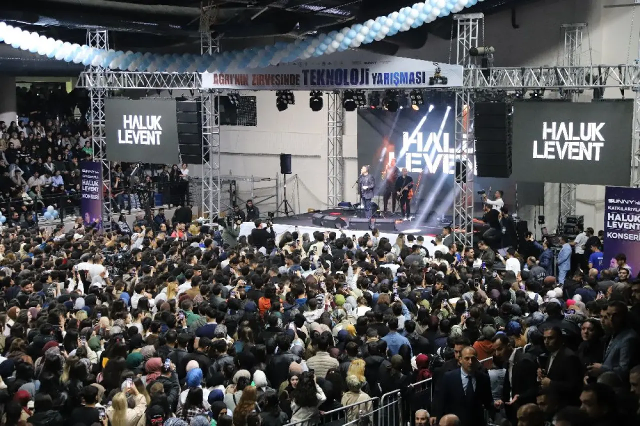 Haluk Levent, bu yıl üçüncüsü düzenlenen Ağrı'nın Zirvesinde Teknoloji Yarışması finalinde konser verdi.Şarkıcı, Hayrettin Atmaca Vakfı'nın sosyal sorumluluk projesi olarak başlattığı organizasyonda hem sahne aldı hem de öğrencilerle sohbet etti. Yaptığı yardımlarla sık sık gündem olan Levent, etkinliğe ev sahipliği yapan Sunny Elektronik ve Hayrettin Atmaca Vakfı Yönetim Kurulu Başkanı Adem Atmaca'ya teşekkür etti.