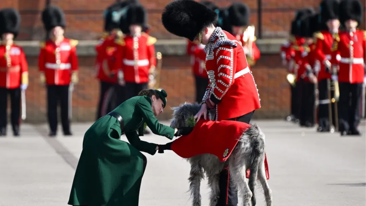 Prenses Kate Middleton, Aziz Patrick Günü Geçit Töreni'ne katılarak Alayın Albayı unvanını taşıdı. Bu etkinlikte, maskot köpeğiyle gerçekleştirdiği sıcak selamlaşma anı, katılımcılar arasında büyük ilgi gördü ve izleyicilerin takdirini topladı. Prenses'in bu samimi tavrı, etkinliğe ayrı bir renk kattı.