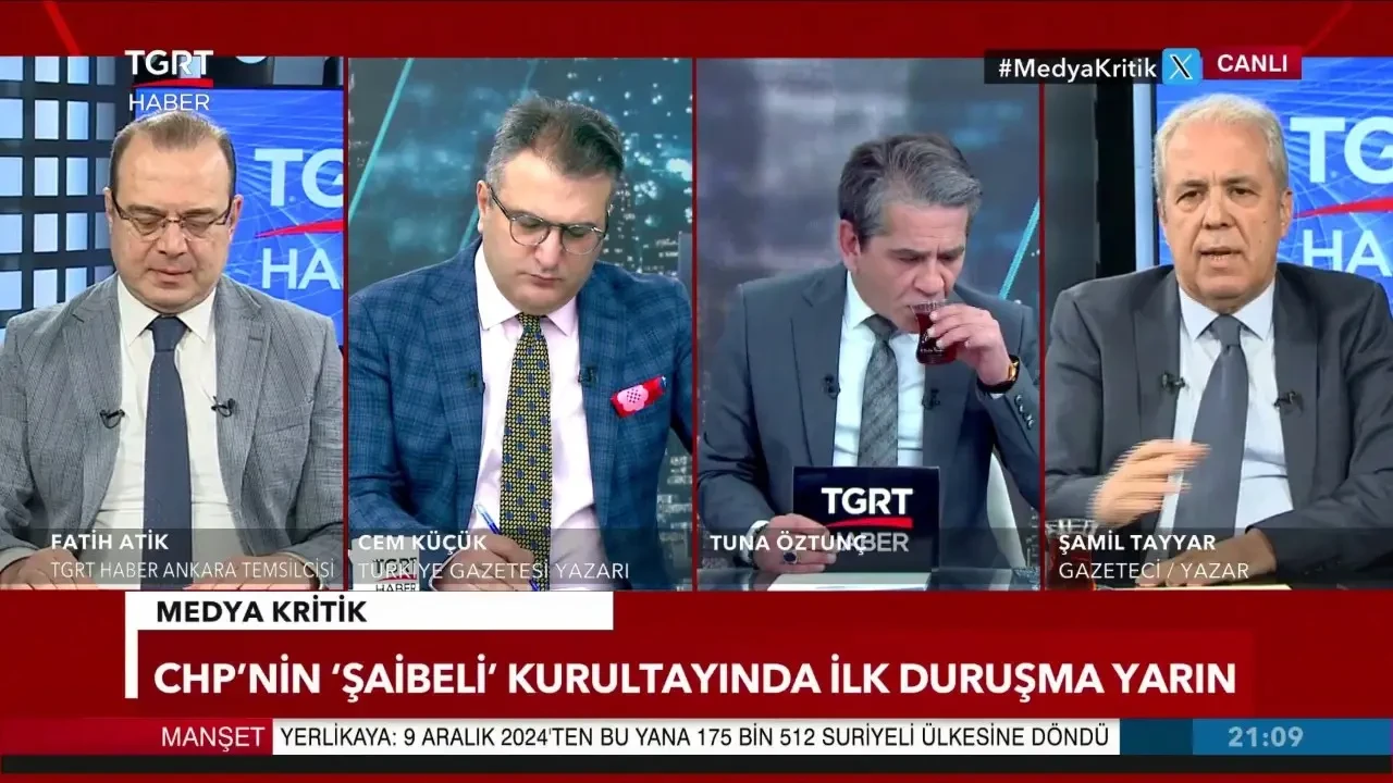 İktidara yakınlığı ile bilinen Rasim Ozan Kütahyalı'nın "CHP'ye kayyum atanacak" iddiası sonrasında hakkında başlatılan soruşturma medyadaki iktidar kanadının da 1 numaralı gündemi oldu.TGRT Haber'de konuşan AK Partili eski milletvekili Şamil Tayyar da Rasim Ozan Kütahyalı'ya tepki gösteren isimler arasında yer aldı.Tayyar, "Başta Rasim Ozan Kütahyalı olmak üzere bu haberleri yapanları gece toplamak lazım" dedi.Tayyar ayrıca, "Bu haberi bir muhalif yapsaydı, gece kanala giderlerdi.