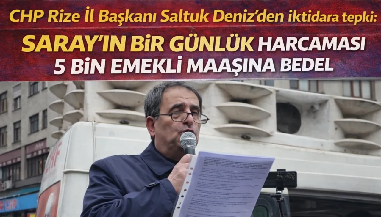 CHP Rize İl Başkanı Saltuk Deniz, basın açıklamasında ekonomi politikalarını ve bütçe tercihlerini hedef aldı. "Sadaka değil hakkımızı istiyoruz" diyen Deniz, Saray'ın günlük harcaması ile binlerce emekli ve asgari ücretlinin geçinebileceğine dikkat çekti.
