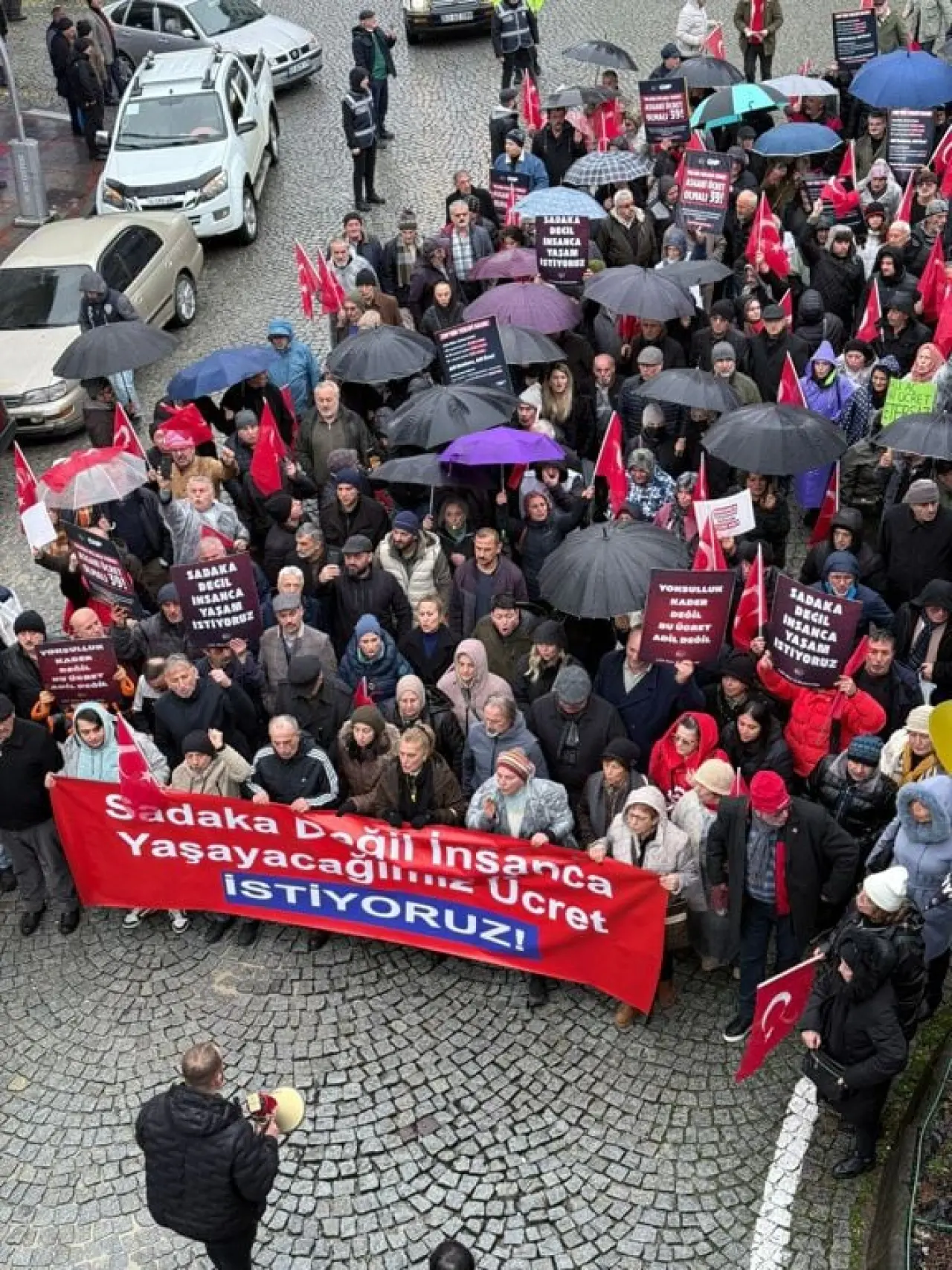 "AKP iktidara geldiğinde emekli maaşı, asgari ücretin 1,5 katıydı. Bugün ise asgari ücretin sadece yüzde 71’i kadar. 2017’den bu yana emekli maaşı 12 kat artarken ayçiçek yağı 32 kat, pirinç 24 kat zamlandı. Emekliyi açlık sınırının altında yaşamaya mahkûm ettiler."