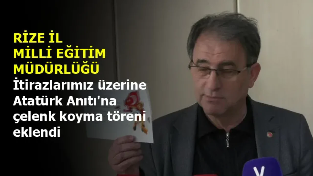 CHP Rize İl Başkanı Saltuk Deniz, İl Milli Eğitim Müdürlüğünün 23 Nisan Ulusal Egemenlik ve Çocuk Bayramı programına Atatürk Anıtı'na çelenk koyma törenini sonradan eklediğini ifade ederek, "Bizim itirazlarımız üzerine yeni davetiyeye çelenk koyma töreni eklendi. Biz itiraz etmesek belki çelenk koyma töreni yapmayacaklardı" dedi.