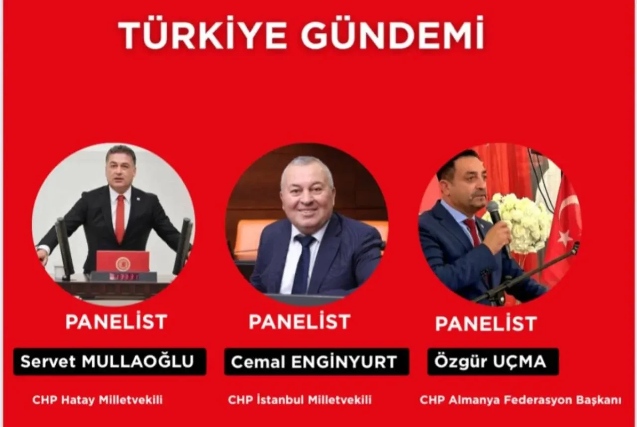 CHP Nürnberg Birliği tarafından organize edilen panel, 11 Temmuz 2025 Cuma günü saat 19:30’da Sulzbacher Straße 80, 90489 Nürnberg adresinde gerçekleştirilecek. Etkinlikte Türkiye’nin siyasal, toplumsal ve ekonomik gelişmeleri ele alınacak.