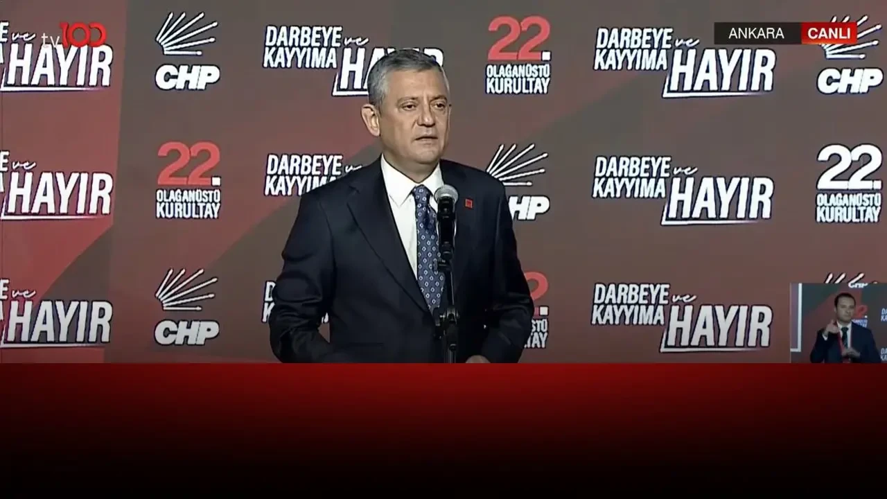 CHP Genel Başkanı Özgür Özel'in tek aday olduğun 22. Olağanüstü Kurultayı başladı. Özgür Özel konuşmasında, "Güven oylaması yapacağız. Normalde hep arkamızda durdunuz. Ama güvenoyu verirseniz seçim yapmadan evlerimize gidiyoruz. Bunun için hep birlikte güvensizlik oyuyla seçimin önünü açmanızı talep ediyorum. " ifadelerini kullandı. Özel'in çağrısı üzerine, oylamada güvensizlik kararı çıktı.