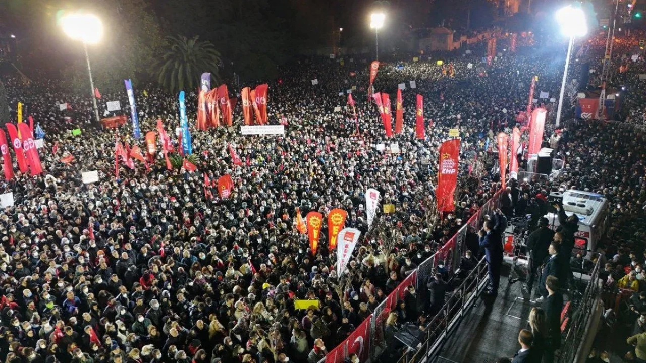 Farklı görüşlerden insanların Saraçhane’de omuz omuza durduğunu vurgulayan Özel, kalabalığı "Bu meydanda her renkten insan var. Türkiye’nin geleceği işte bu birliktelikte" sözleriyle selamladı.