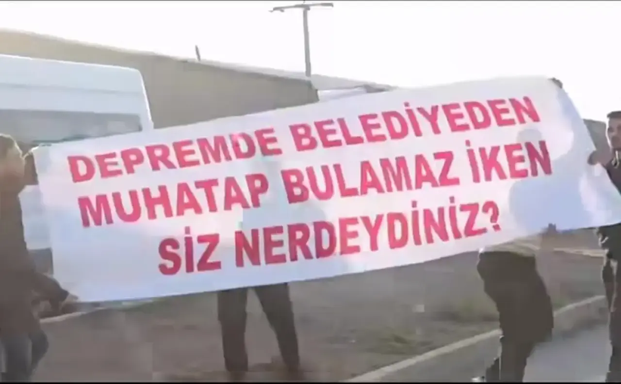 Ziyaret sırasında “Depremde belediyeden muhatap bulamaz iken siz neredeydiniz?” yazılı pankart taşıyan öfkeli grup Özel’i protesto etti.