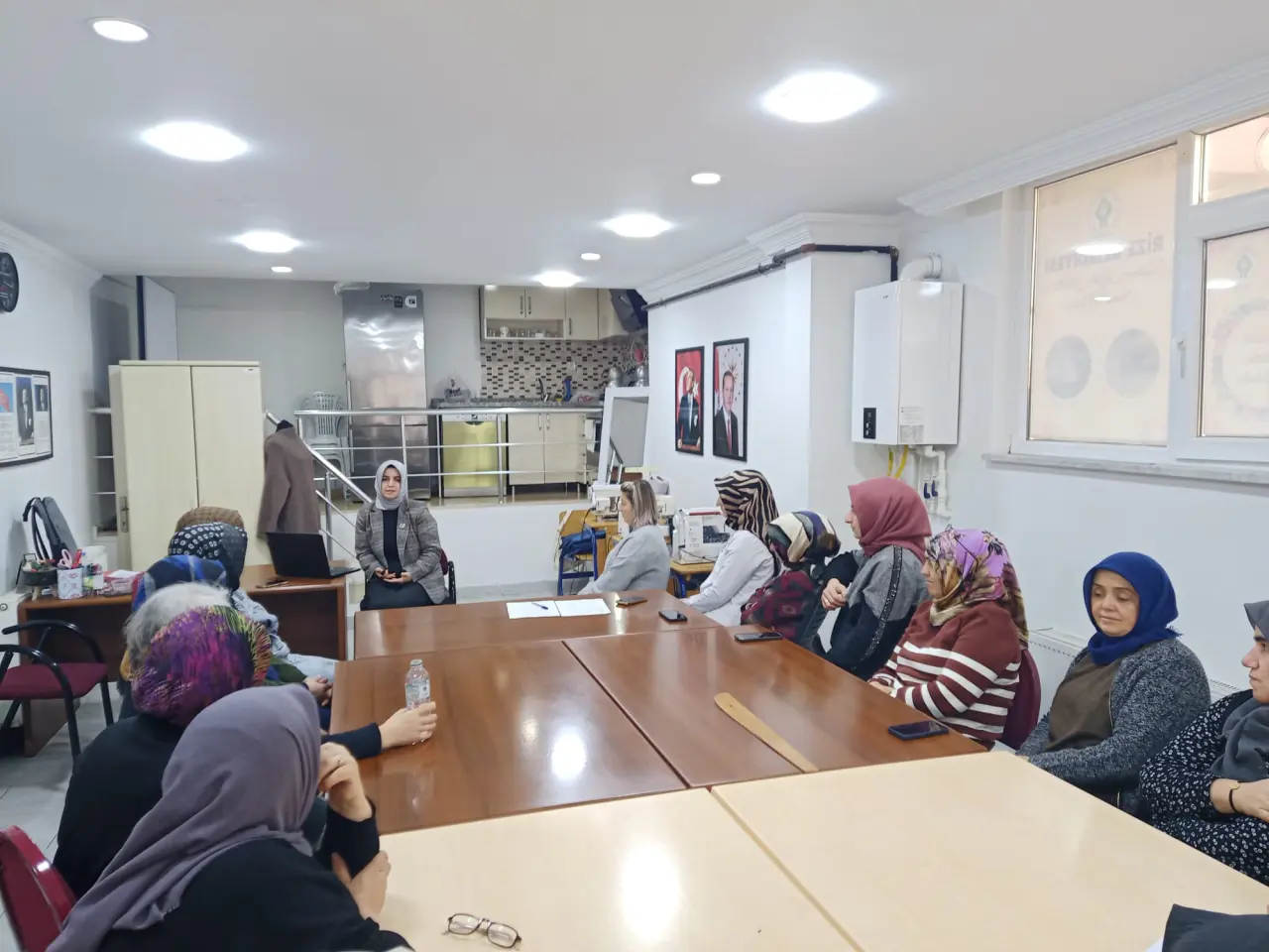Tophane Mahallesi’nde düzenlenen programda, Aile ve Sosyal Hizmetler İl Müdürlüğü tarafından kursiyerlere “Aile Yaşam Becerileri” eğitimi verildi. Eğitimde aile içi iletişim, sağlıklı ilişkiler kurma, problem çözme becerileri ve aile bütünlüğünün korunmasına yönelik önemli bilgiler paylaşıldı. Katılımcılar, günlük yaşamda karşılaşılabilecek sorunlara yönelik çözüm odaklı yaklaşımlar konusunda bilgilendirildi.