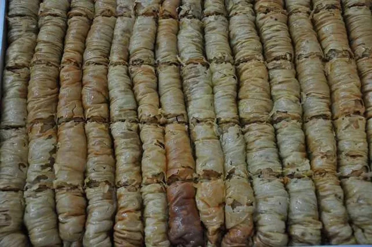 Dinlenen hamur bezeler halinde ayrılır ve nişasta yardımıyla incecik açılır. Açılan yufkaların ortasına bolca kıyılmış fındık serpilir. Yufka oklavaya gevşek şekilde sarılır, iki uçtan içe doğru büzülerek şekil verilir. Oklavadan çıkarılan hamur yaklaşık 3 santimetre genişliğinde kesilerek tepsiye dizilir.