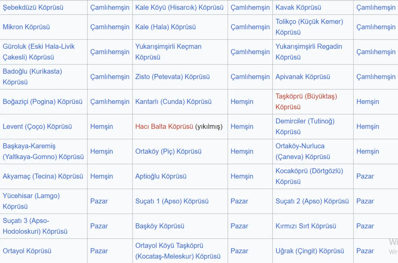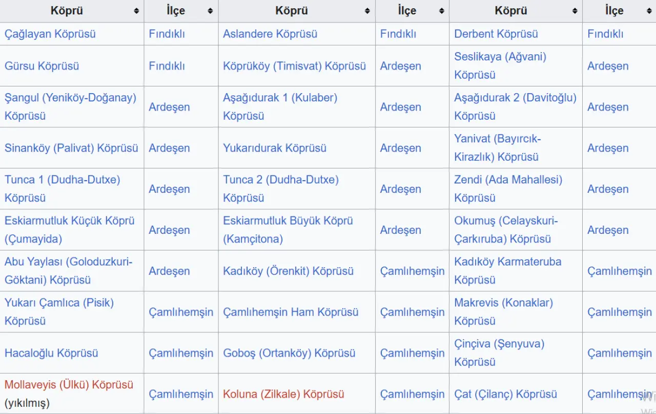 Türkiye'deki taş kemer köprülerin yaklaşık %10'u Rize il sınırları içerisindedir. Bu köprülerin çoğu Osmanlı İmparatorluğu döneminde yapılmıştır ve tek gözlüdür.