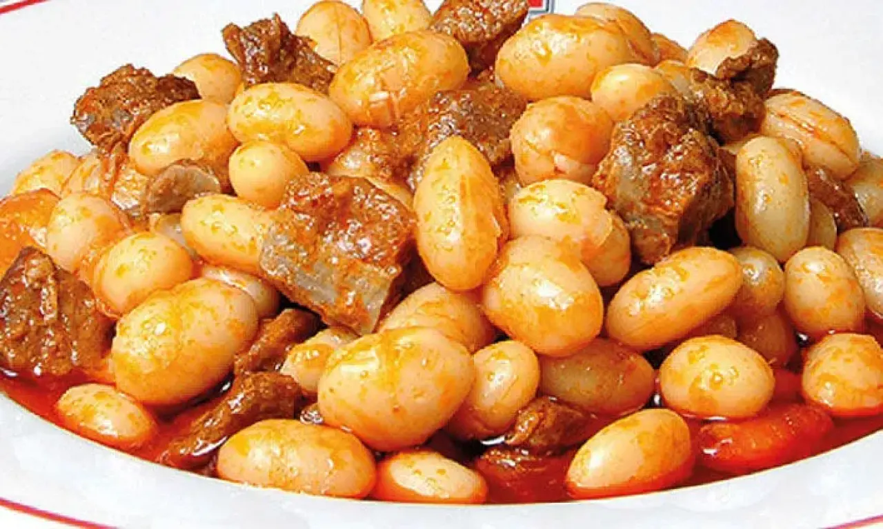 Bir gün önceden kuru fasulyeyi yarım litreden biraz az su, 1.5 su bardağı süt ve 1 çay kaşığı toz şeker ile ıslatın. Ertesi gün kuru fasulyenin suyunu süzüp tekrar aynı ölçüde süt ve su ekleyip fasulyeler yumuşayana kadar pişirin. Başka bir tencerede eti suyunu salıp çekene kadar pişirin. Etler yumuşayınca tereyağı, salçalar ve karabiberi katıp kavurun. Hazırladığınız bu sosu haşladığınız kuru fasulyelerin üzerine ekleyin. 10 dakika pişirin. Kuru fasulyeyi fırına dayanıklı bir kaba alın. Ağzını alüminyum folyo ile kapatarak önceden ısıttığınız 150 derecelik fırında 30 dakika daha pişirin. Pişme süresi tamamlandıktan sonra fırın kapağını açmadan tencereyi 20 dakika daha fırında beklettikten sonra servis edin.