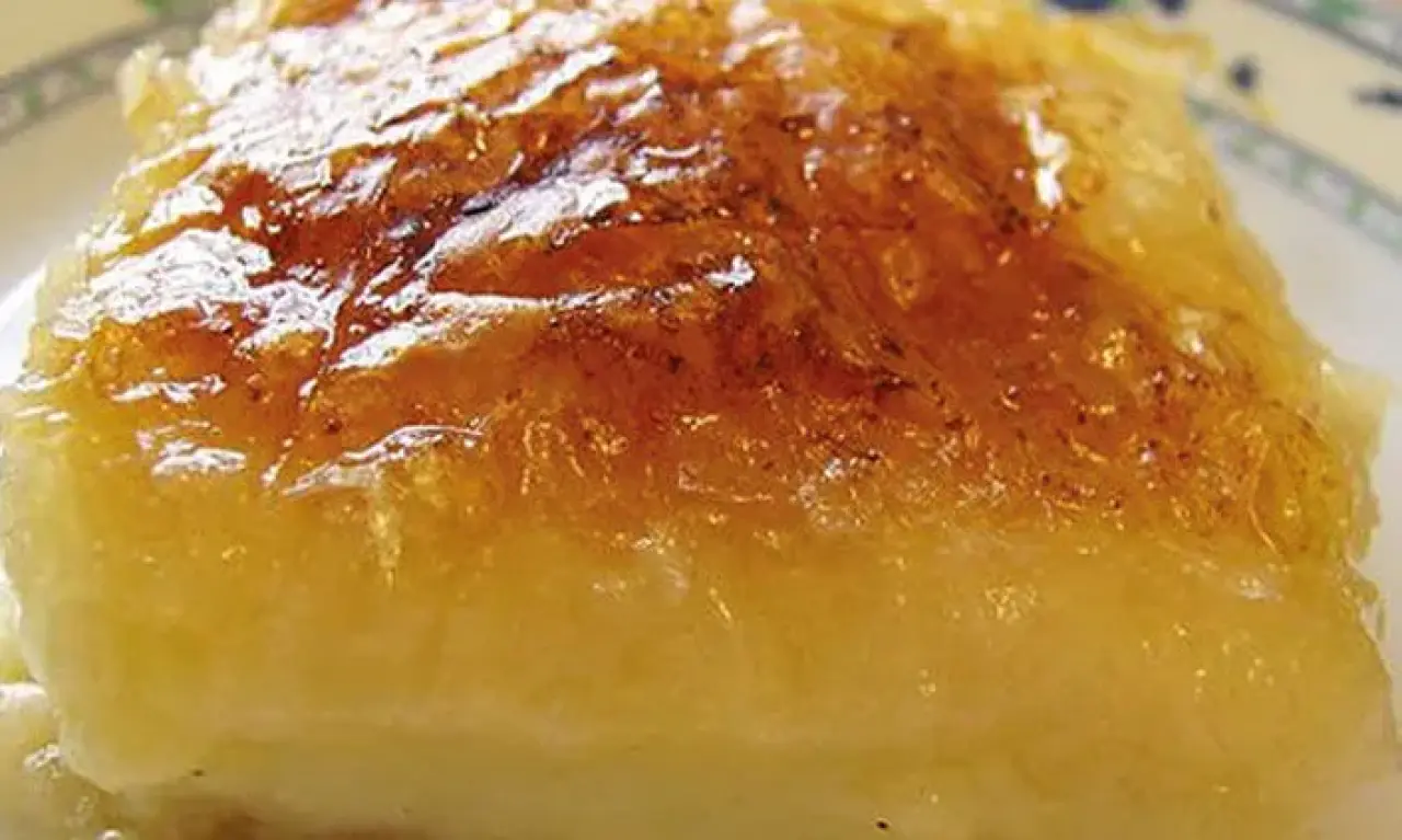 Yapılışı: İyice yoğrulup bir süre dinlendirilen hamurundan tepsinin büyüklüğüne göre baklava yufkası açılır. Yufkaların yarısı yağlanmış tepsiye serilip üzerine hazırlanan muhallebi yayılıp üzerine kalan yufkalar serilir. Tereyağı eritilip üstüne dökülerek arzuya göre kare veya üçgen şekilde kesilerek fırına verilir. Piştikten sonra soğumaya bırakılır. Daha sonra üzerine şerbet gezdirilir.