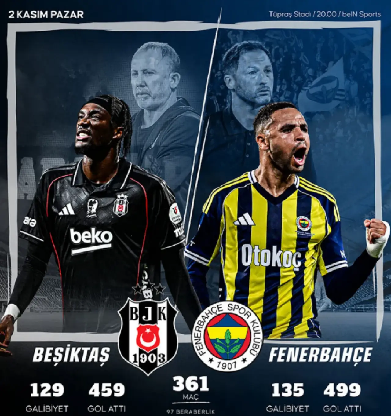Süper Lig’in 11. haftasında dev bir mücadeleye sahne olacak Fenerbahçe - Beşiktaş derbisi, Tüpraş Stadı’nda Çarşamba akşamı saat 20.00'de başlayacak.